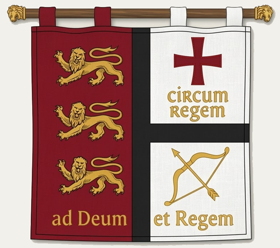 Willkommen bei Circum Regem – “Um den König”. Wir sind eine spätmittelalterliche Lagergruppe englischer Bogenschützen, unsere Darstellungszeit bewegt sich zwischen der zweiten Hälfte des hunderjährigen Krieges und dem Beginn des “War of the Roses”, des Bürgerkriegs zwischen den Häusern Lancaster und York. Dies war die Hochzeit des englischen Langbogens, der in berühmten Schlachten wie Agincourt 1415 entscheidend die Taktik der englischen Heere geprägt hat und oftmals ausschlaggebend für den Sieg war.